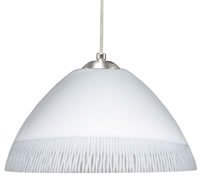 This one light pendant luminaire offers functional light with contemporary flair. -Handcrafted European Opal Cut Glass -Primary Metal: Steel/Brass -Medium-base lampholder accepts standard A19 lamps up to 100W -Domed easy-install ceiling canopy -Suitable for sloped ceilings -Dimmable with standard incandescent dimmer -10? max hang cord -Canopy/Fitter Height: 2.5" -Canopy/Fitter Width: 5"